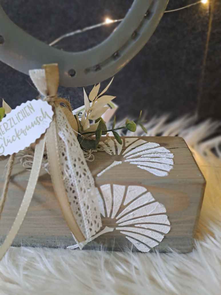 – Text auf Papierschild: „von Herzen“, „für dich“, „viel Glück“, „Herzlichen Glückwunsch“